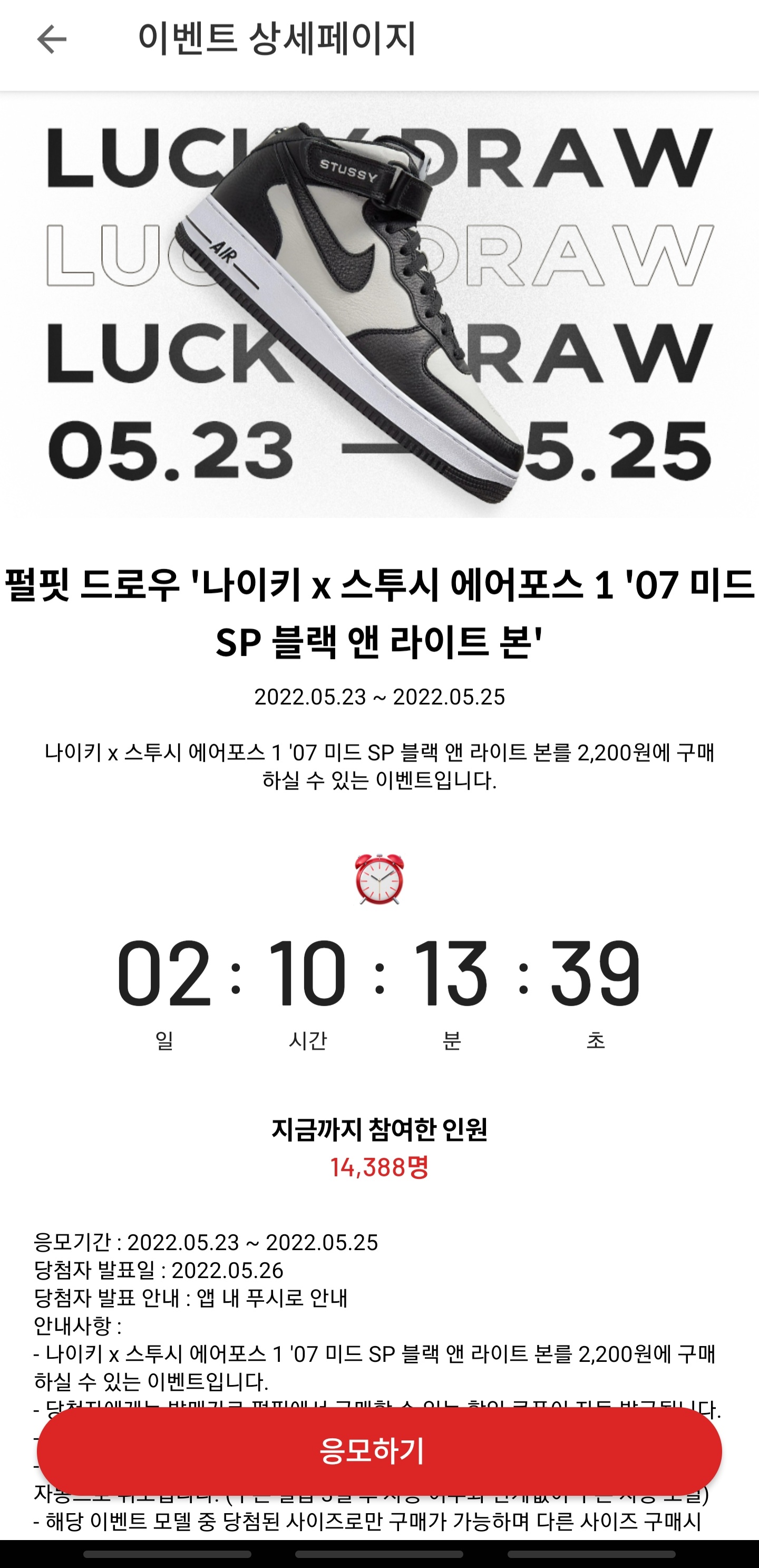 참여하고 있는 신발 응모방법에 대해