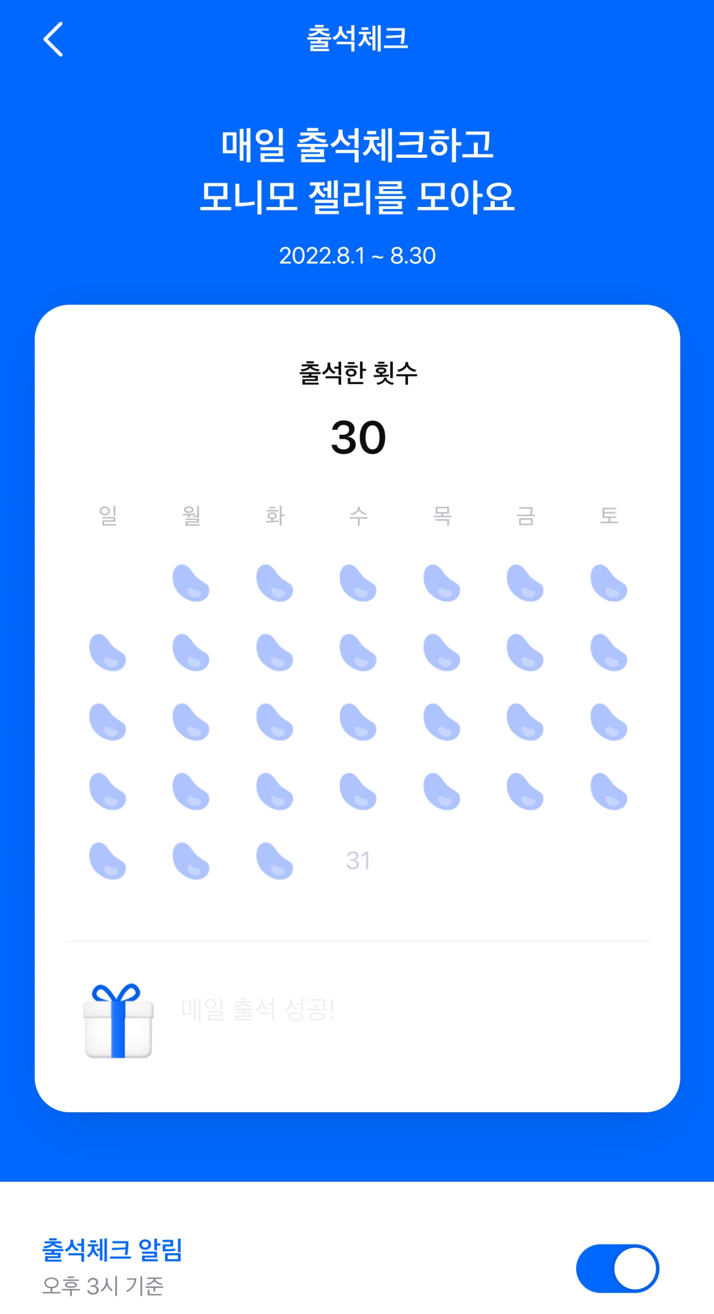 한달 만기 출첵을 하면 스페셜젤리 1개