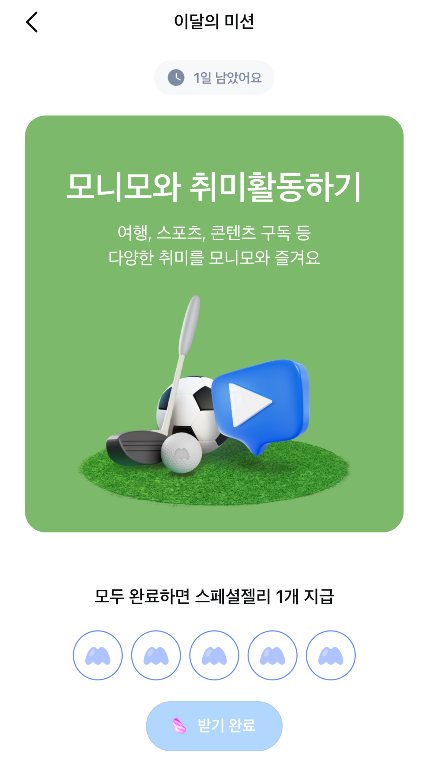 이달 미션 5개를 완수하면 스페셜 젤리 1개를