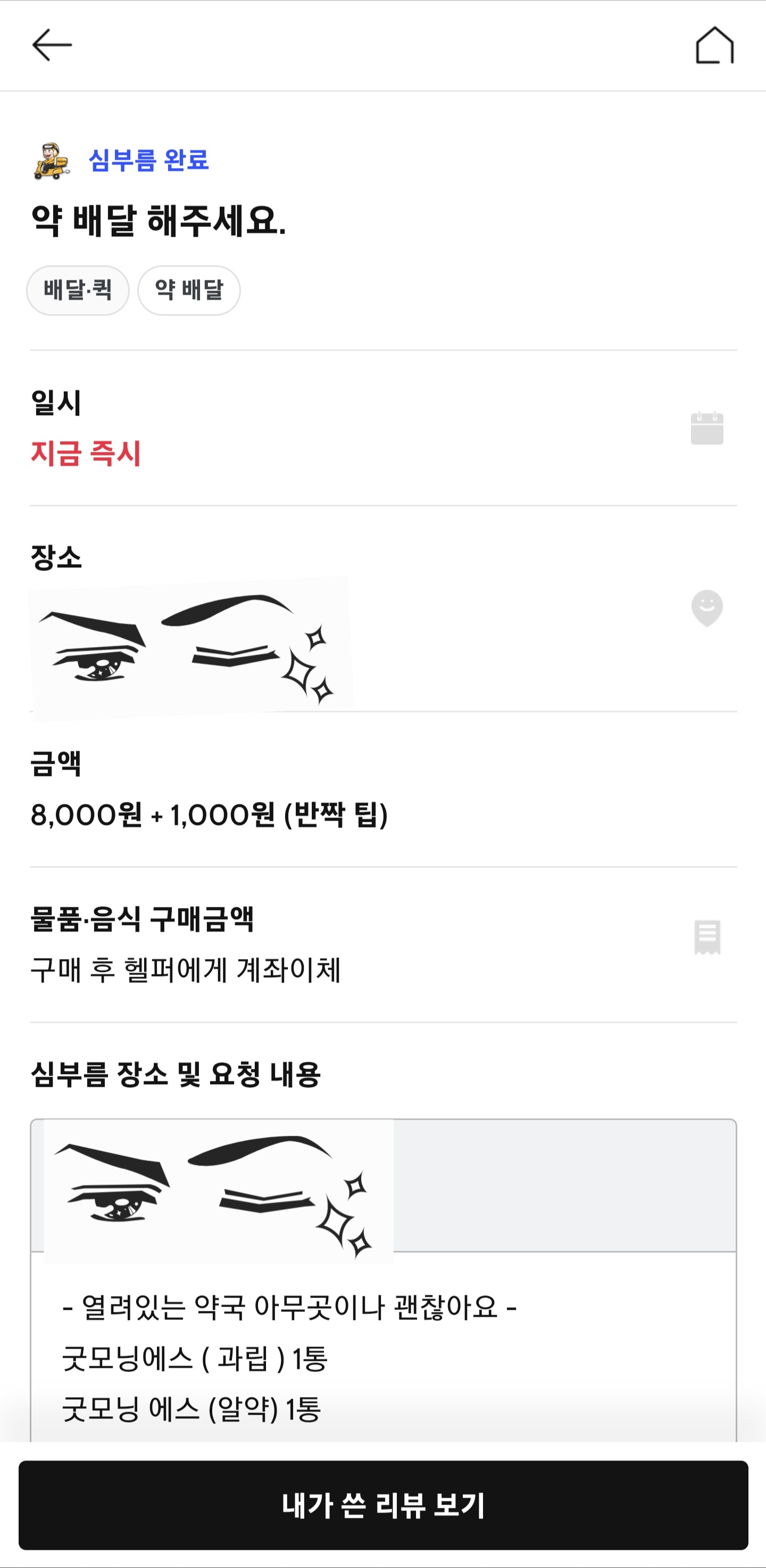 구매한 후에 심부름 시킨 분에게 배달완료했다.