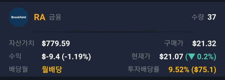 월요일에 다른 곳에서 받은 배당으로 RA 1주를 추매했다.