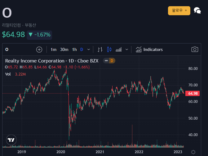현재 리얼티인컴의 가격은 64.98$입니다.