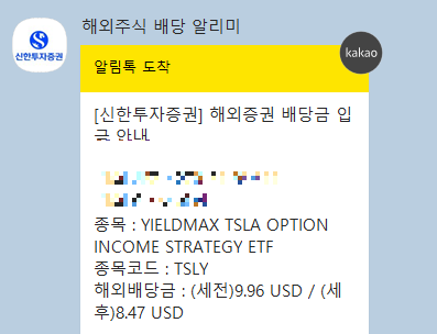 저의 TSLY 주식수를 보시면 10개입니다. 한투에서 남은 달러로 1개 매수, 신한에 9개 매수했습니다.