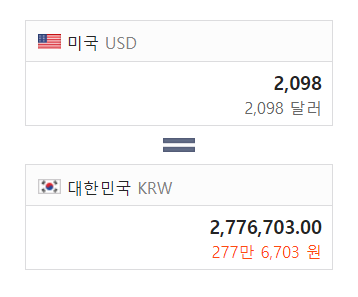 현재 미국 달러가 월 25만원을 달성했었던 이전 때와 비교해서 10원 차이가 난다.