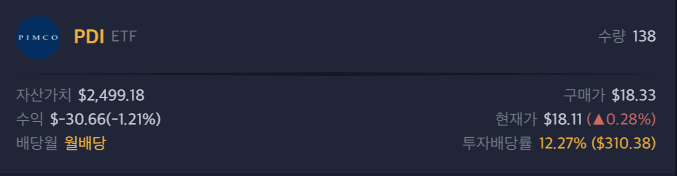 | [7월02일] PDI(PIMCO Dynamic Income Fund) 1주 매수 일지 (1) | 2024.07.02 |