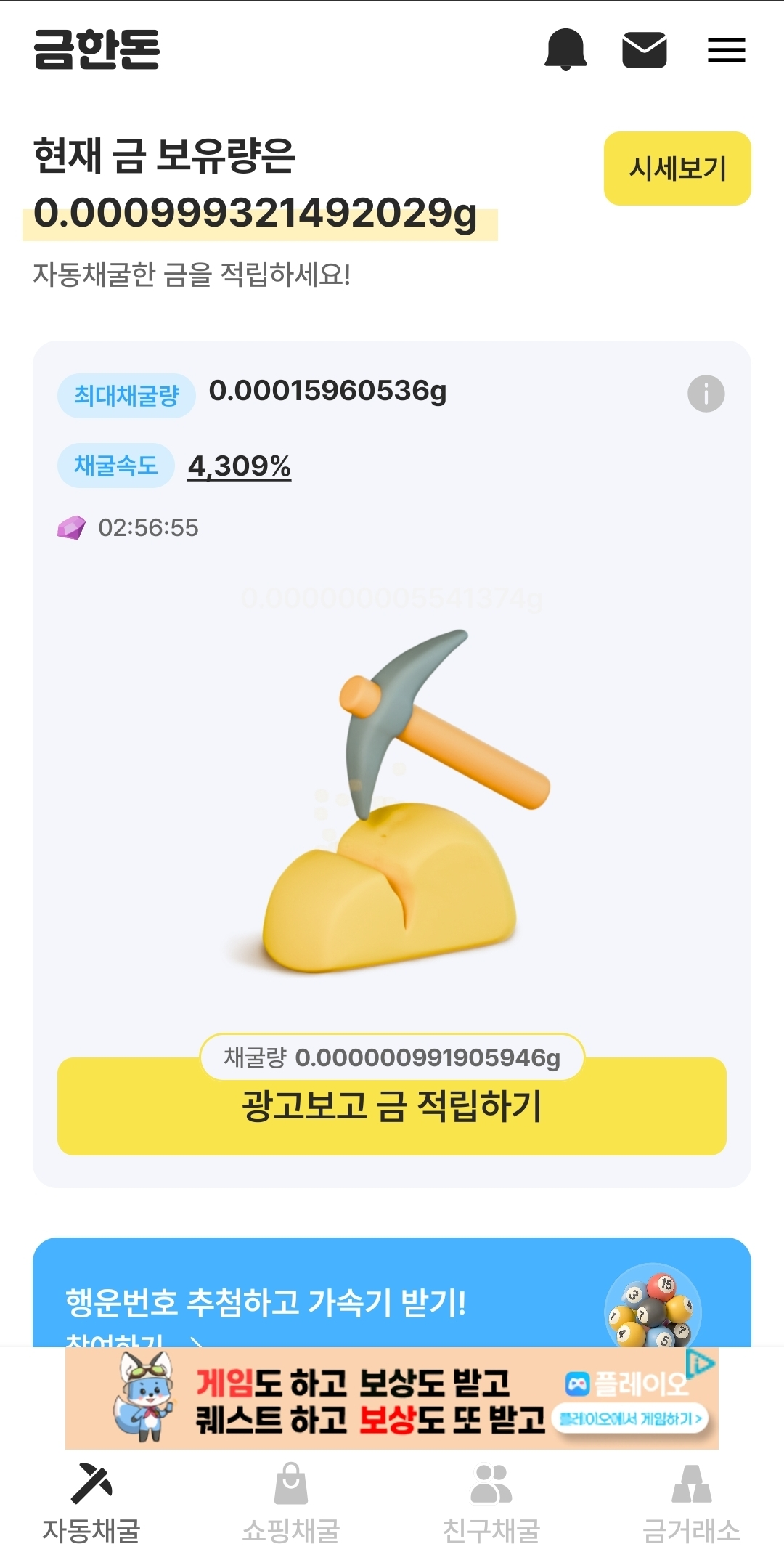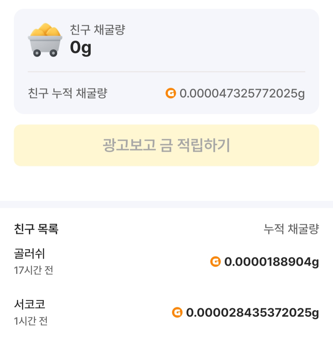 서로 같이 열심히 금한돈으로 금채굴을 하면 금방 1g을 모을 수 있습니다.